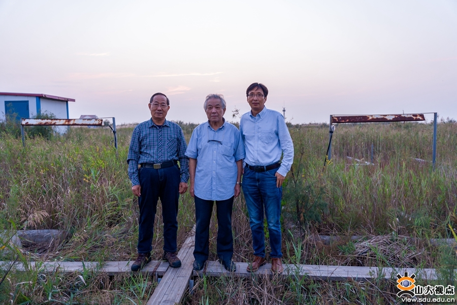 王仁卿(左一)与复旦大学、中科院海岸所专家一起考察黄河三角洲生态试验站