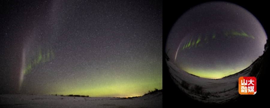 图1. 2018年5月6日夜晚北美上空的STEVE事件。(摄影Johnny Yuan)