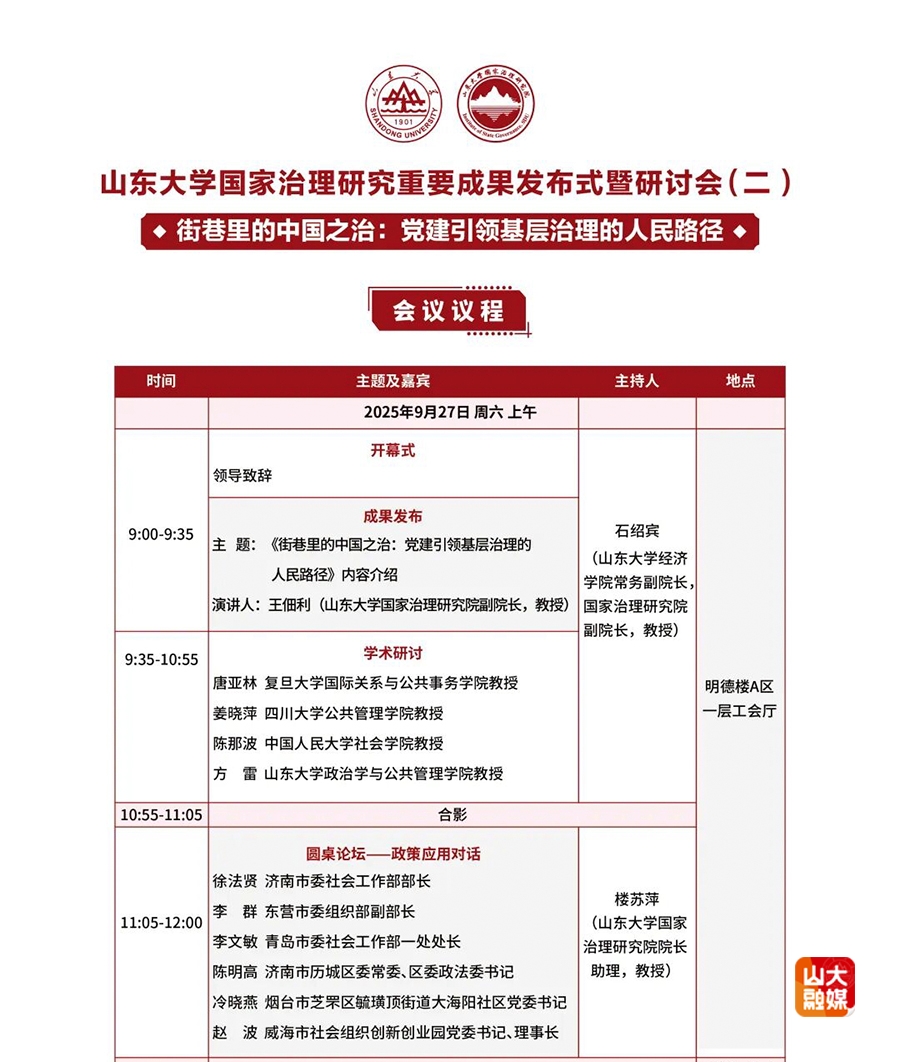 主办单位:山东大学国家治理研究院、山东大学社会治理研究基地
