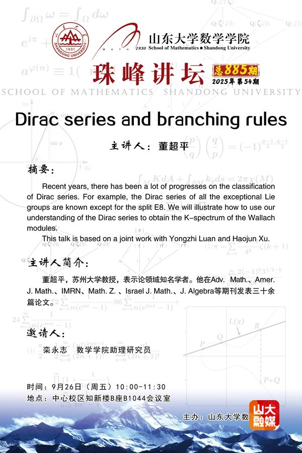 数学学院珠峰讲坛第885期:Dirac series and branching rules