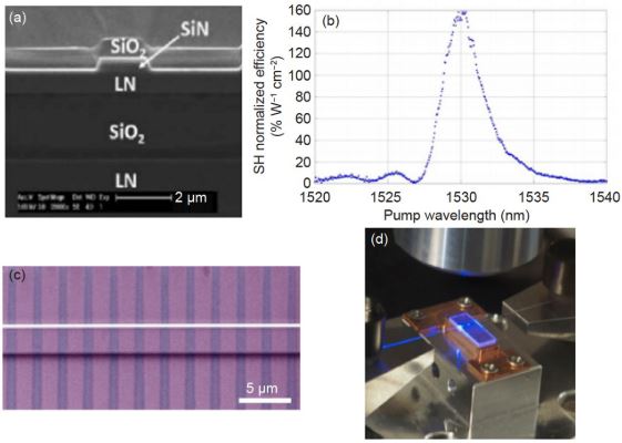 研究也得到了迅猛的发展. 我们通过在对铌酸锂薄膜结构的调整实现了通讯波段高效率的倍频及和频转换,相关工作正在进行中。